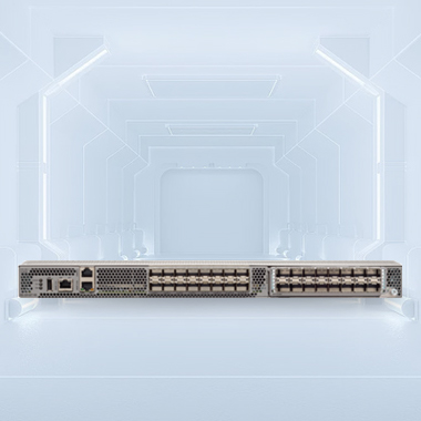 MDS9132T 32 端口交换机提供从服务器机架到 SAN 核心的高速光纤通道连接。这款低成本、低功耗、无阻塞、线速、低延迟、支持双向气流的固定独立 SAN 交换机可连接存储和主机端口,可以此为基础构建小型 SAN 体系结构。 使用 SAN 核心控制器构建的中型到大型 SAN 体系结构,可以使用这些交换机在交换机模式或网络端口虚拟化 (NPV) 模式下将 32 Gbps 连接扩展到服务器机架。为了实现灵活性,MDS9132T 可从 8 个端口扩展到 32 个端口。